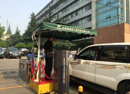 看到大门那红色站台和绿色遮阳伞之间站着那英俊潇洒的秩序维护队员,他是那么的高大威猛,年轻帅气,微微的笑容不乏有些腼腆,当有车辆来临时他那标准的军礼又不乏庄重的色彩和敬畏的心灵。