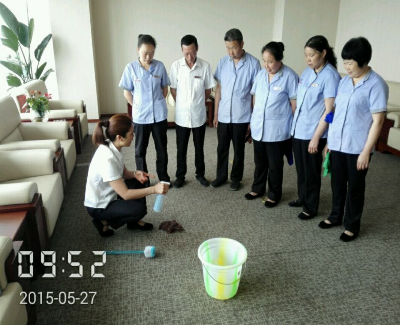 为了提升温江办公区的服务品质和业主的满意度,做好温江办公区的室内保洁工作,给业主营造一个洁净的办公环境,5月27日,温江物业服务部办公区环境部在对保洁人员就如何进行地毯污迹处理、卫生间便池除异味等相关专业技能进行现场实际操作培训。