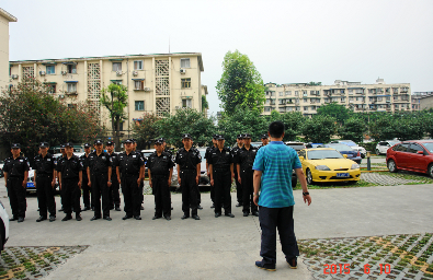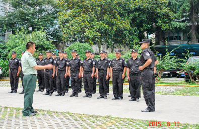 2015年6月10下午6:30,成都院综合事务部特意邀请到成都某部队领导亲临浣花小区,对成都物业服务部20名秩序维护队员进行军事训练指导。训练活动中全体受训队员个个精神抖擞,意气风发,认真听讲,掌握要领。