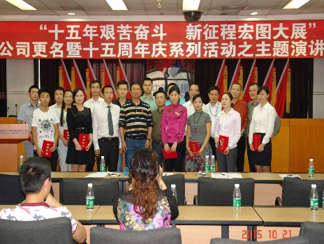 为庆祝公司成立十五周年暨更名,增强企业凝聚力、活跃员工文化生活,实现公司新一轮腾飞营建积极向上的氛围,并在公司发展壮大的历史上树立一块醒目的碑石,公司启动了“十五年艰苦奋斗,新征程宏图大展”为主题的公司更名暨成十五周年庆系列活动。10月21日14:30,系列活动之主题演讲比赛于浣花办公区B608会议室成功举办,公司书记范继辅和董事长李明分别做了开幕致辞和总结讲话。