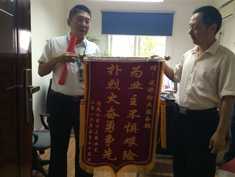 2016年5月21日中午14:00,成都物业服务部26栋停车场秩序维护员李万军发现成勘院小区13栋4单元楼顶有浓烟且有加重趋势,发现异常情况后,他立即用对讲机向班长冯雪科报告。冯雪科一边组织罗阿洪、吉克马布、向志、张洪兵、宋茂民等秩序维护队员迅速赶往火险地点,一边向领导报告,并在拨打119火警电话报警的同时积极与业主联系。