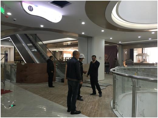 邓益一行首先察看了项目现场施工进度,由于部分商家还在装修,公司要求项目部要加强施工期间人员进出管控,配合甲方做好现场秩序维护和环境工作。