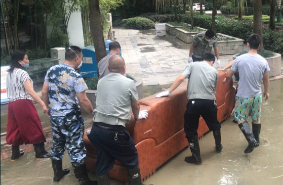 7月17日,“金浣花”的名字出现在第三批增援金堂抗洪救灾队伍的名单中。公司领导高度重视,立即部署紧急救援计划,在不影响公司各物业项目正常运转下,从各部门抽调出一批人员,成立了金堂抗洪救灾小组,准备了铲淤泥的铁锹、手套、口罩、雨衣、雨鞋、紧急药包等支援物资。